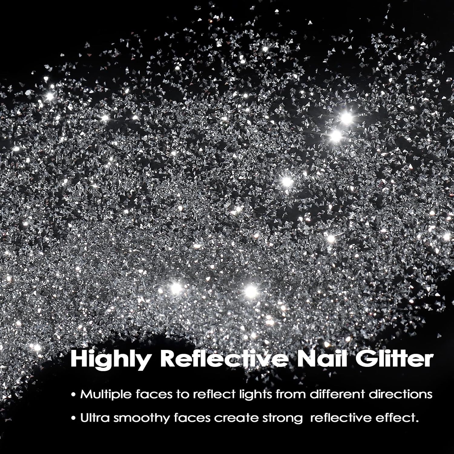 - Shiny Flash Glitter:Our nail glitter can bring pretty bright, shiny and large sparkles for nails. This reflective glitter for nails is crushed diamond dust. The white reflective nail glitter and silver reflective nail glitter all are 3D chunky glitter shaped pyramid. This chunky 3D glitter on nails can hit and reflect all lights from any directions. It is a nail tech must haves glitter if you need dazzling flash powder nails for some events.