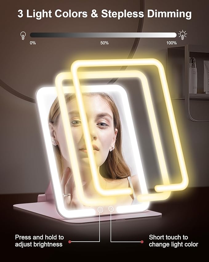 - 【3 Light Colors and Stepless Dimming】With 58 LED lights, it features smart lighting modes and highly sensitive touch controls. Simply tap with your fingers to switch freely between warm light, natural light, and white light modes. Long press for stepless dimming, allowing you to easily adjust brightness for your ideal lighting
