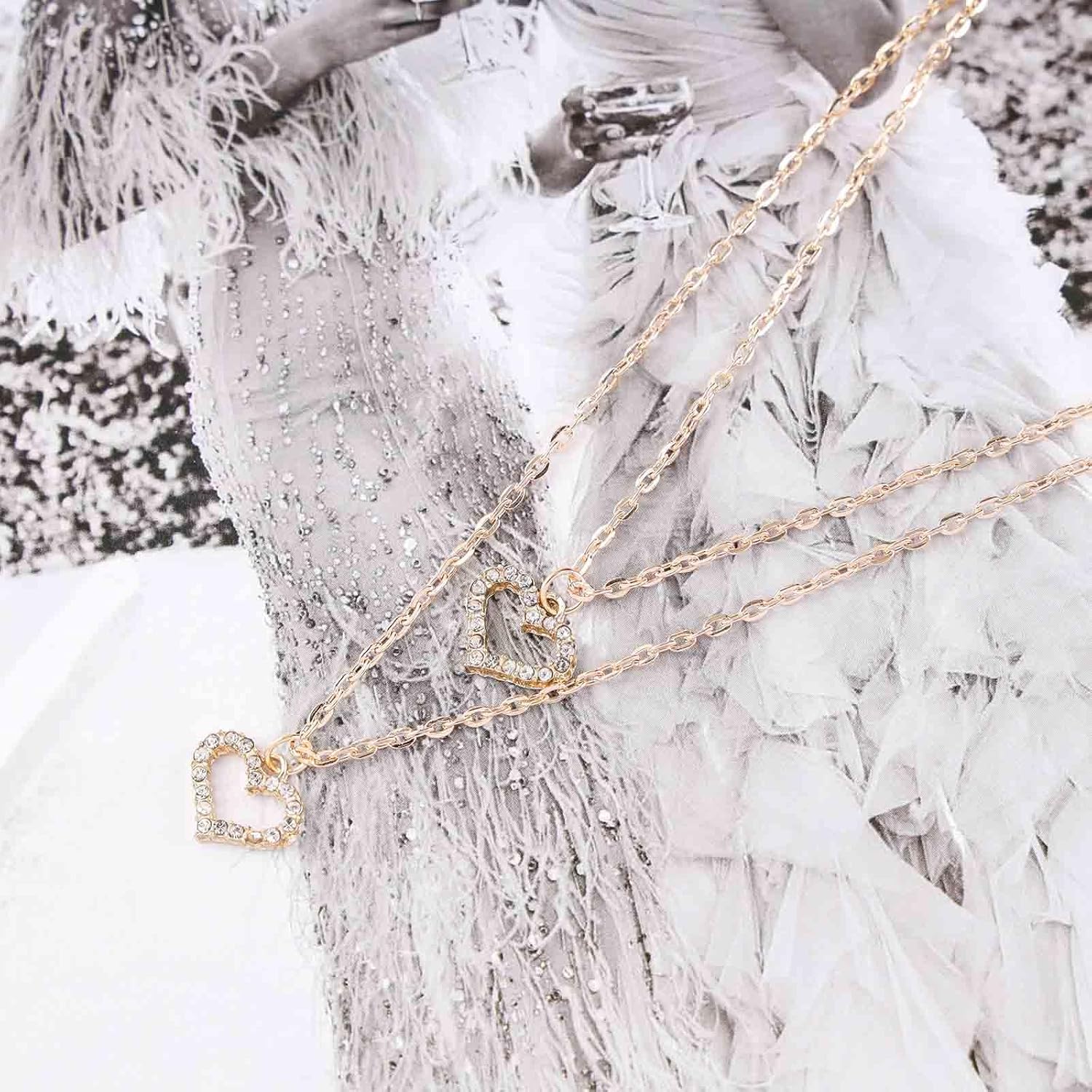 - Layered crystal heart necklace made of high quality alloy and rhinestone,make the surface of the necklace brighter,hypoallergenic,won’t irritate your skin.