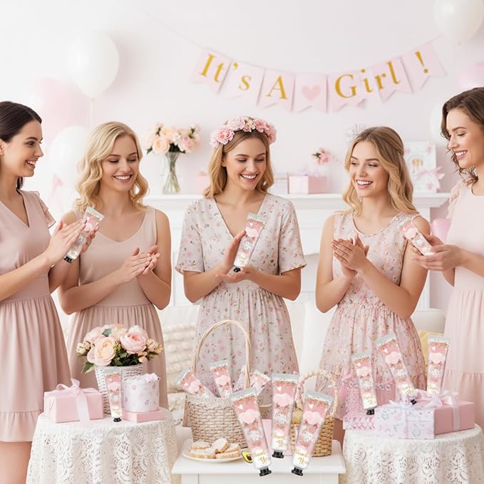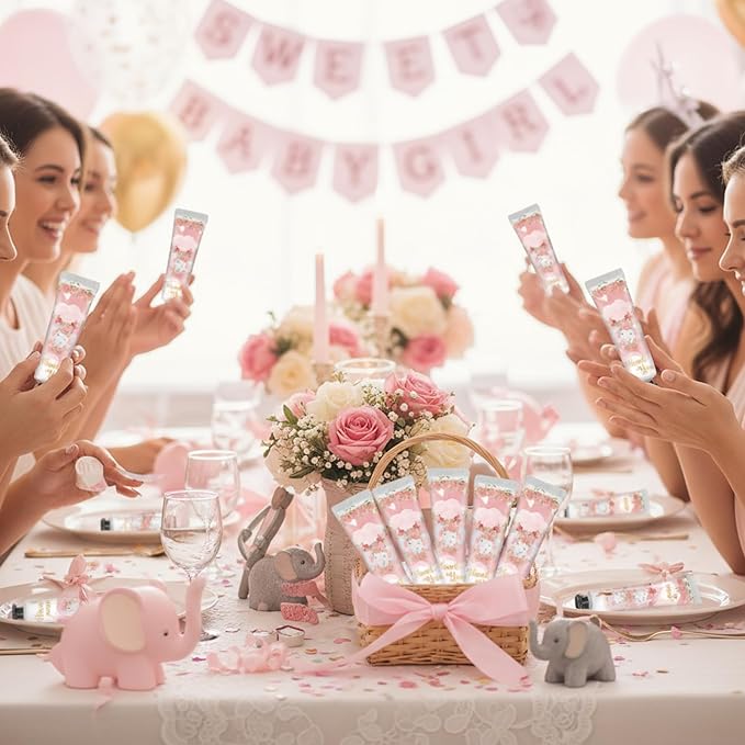 - Baby Shower Themed Design: small hand lotion mainly adopts the pink background color, and the surface is printed with cute elephant, clouds and flowers patterns, which is in line with the theme of baby shower; Not only can it be applied as a gift, but it is also a good baby girl party decoration, the cute and interesting design can attract people's attention, leaving a deep impression on them