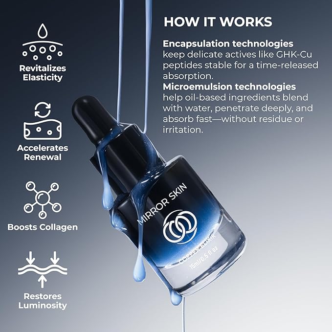 - How To Use - Use your MIRROR SKIN peptides serum for face twice daily, once in the morning and once at night. Apply enough to lightly cover your entire face, gently tapping into the skin. Feel free to pair with a sunscreen for face.