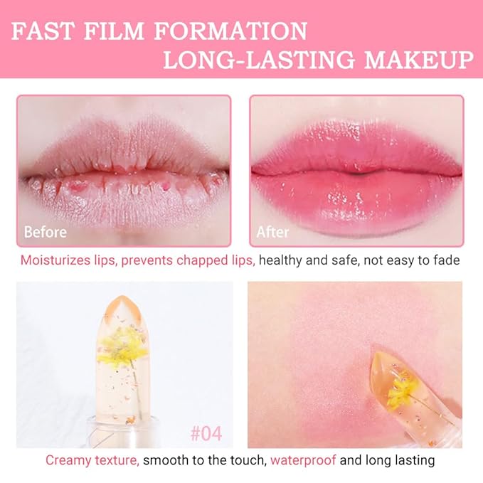 BINGBRUSH Crystal Flower Jelly Color Changing Lipstick,Long Lasting Lip Care Moisturizer Lip Balm Magic Color Change Lip Gloss Lip Tint Stain Matte Makeup Lipstick (04#Yellow flower)