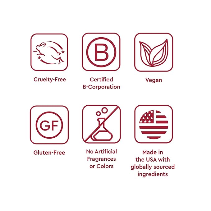 - Vegan, No Artificial Dyes or Fragrances, Made in the USA with Globally Sourced Ingredients, Gluten Free, Cruelty Free, Bcorp