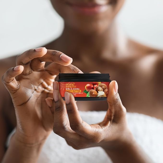 Desert Essence, Shea & Jojoba Body Butter 7.5oz, Hyaluronic Acid & Coffee Oil, Deeply Moisturizing and Nourishing, Antioxidant Rich, Moisture Rich Botanicals Shea Butter & Jojoba Oil