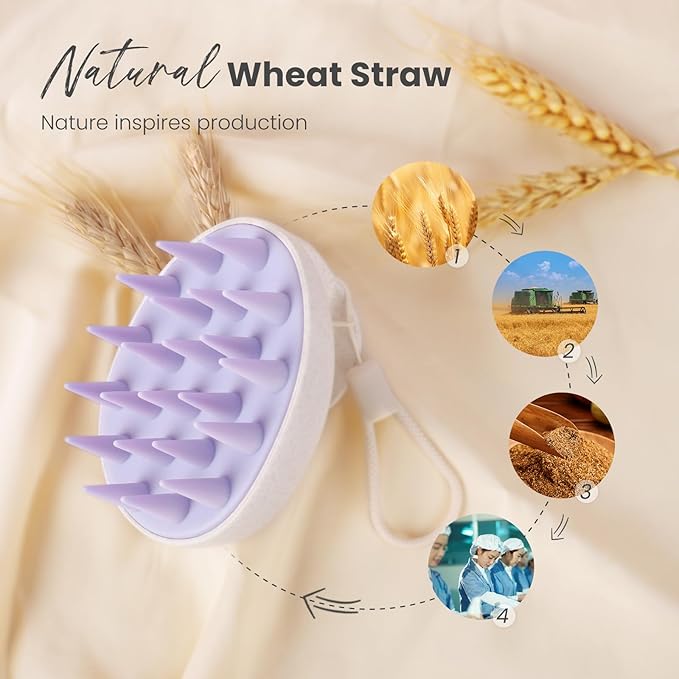 - Wheat Straw Scalp Scrubber: AIMIKE hair scalp massager shampoo brush is made of natural wheat straw with soft silicone bristles. Unlike the traditional hair shampoo brush, it is natural protector for your scalp and planet