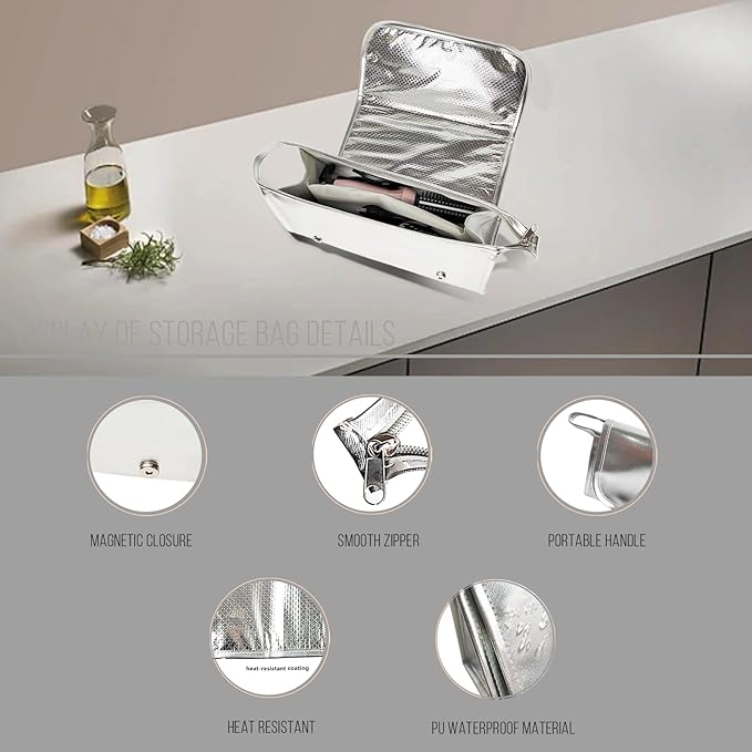 DAN Technology Hair Tools Travel Bag, 12.5 x 5.5 x 5.5 inches, Silver - Heat Resistant Mat, Protective Pad, Hanging Rope, Portable Design, Ideal for Hair Dryer, Curling Iron, Flat Iron, Straighteners