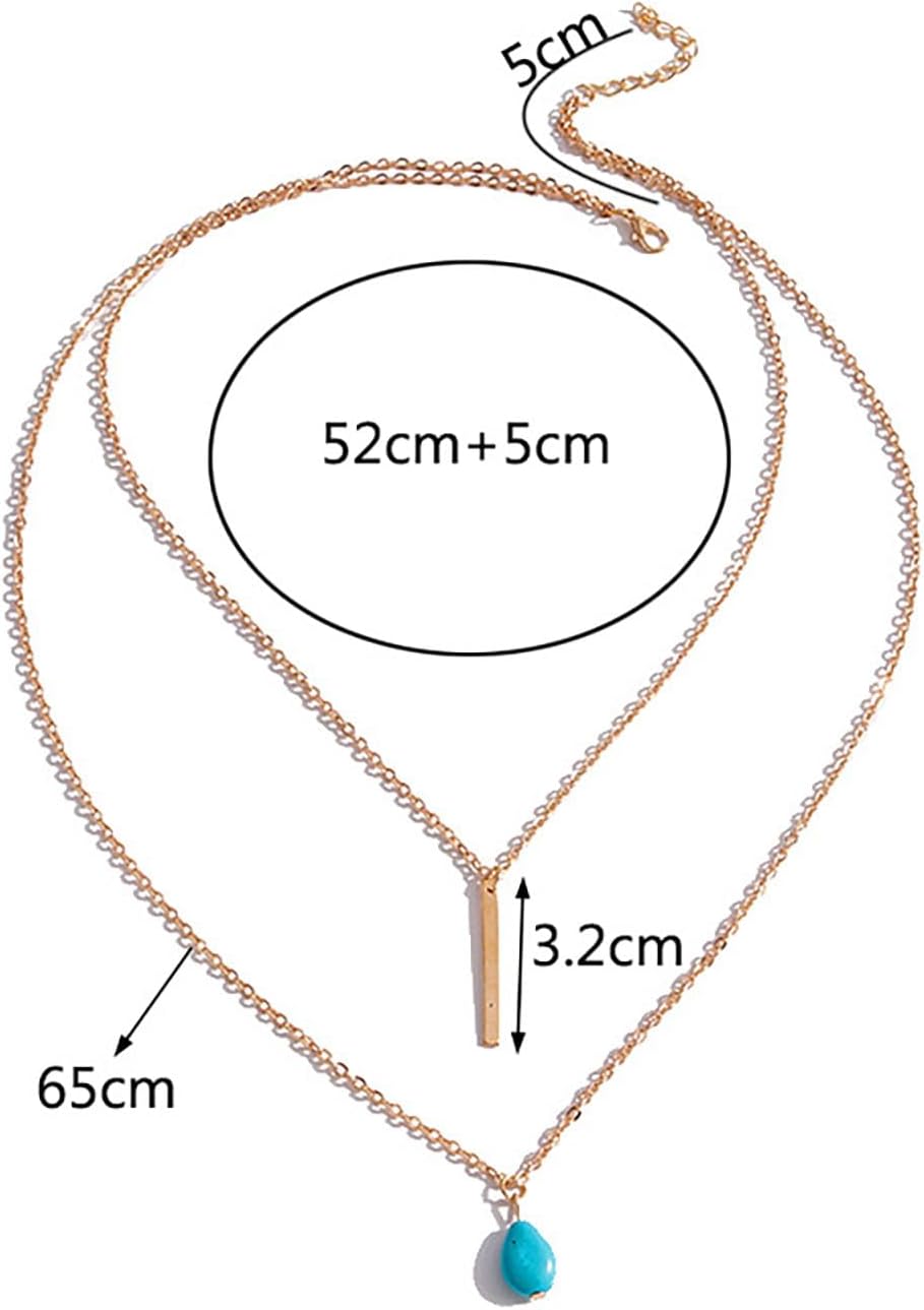 Boho Teardrop Turquoise Neckalce Layered Turquoise Pendant Neckalce Gold Bar Pendant Necklace Vintage Layering Turquoise Water drop Necklace Jewelry for Women and Girls