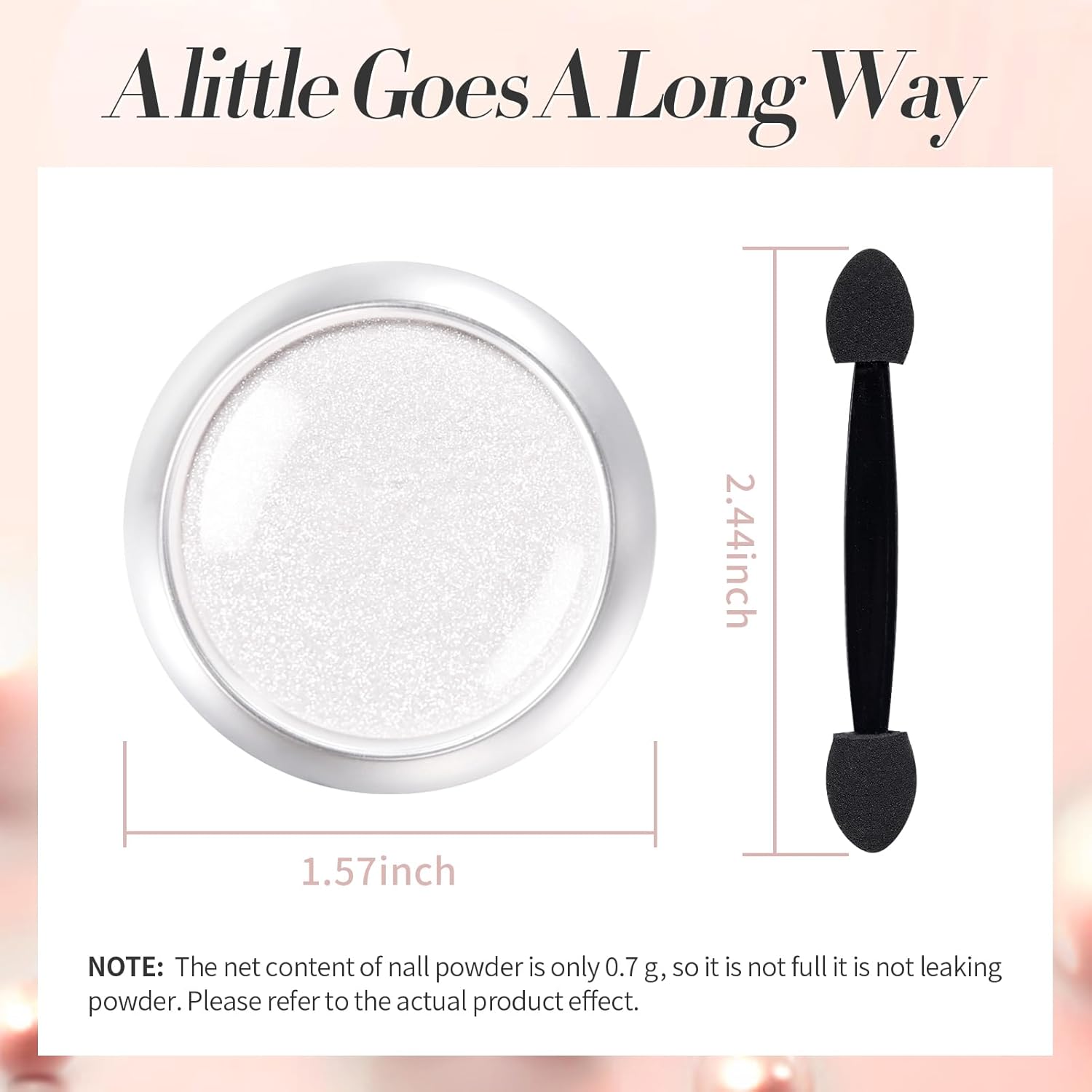 Born Pretty White Color Pearl Chrome Nail Powder Auroras Nail Powder Mirror Effect Pigment Mermaid Nail Glitter Powder for Nail Art Manicure Decoration