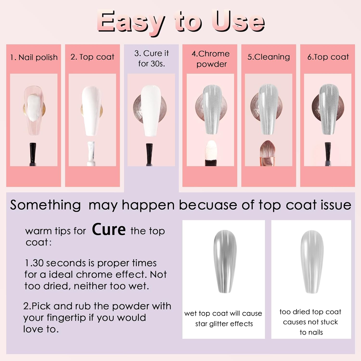 - Wide Usage: Allstarry metallic chrome nail powder set can perfectly match with fall glitter, chameleon flakes, nail charms, french manicure, 3D shell nails and etc, meeting your needs for different works. What’s more, the chrome powder for nails can also be applied on UV gel nails, acrylic nails, natural nails, and it can be mixed into nail gel polish or chrome nail polish for its solvent resistance