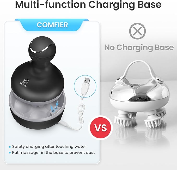 - Portable and Waterproof: Compact in size, COMFIER cordless scalp massager is comparable to a mug, offering the flexibility to use it anywhere after a full charge. With an extended battery life, the head scratcher can be used for hours on a single charge. Crafted with IPX-7 waterproof material and featuring both clockwise and counterclockwise rotation, it ensures a thorough scalp massage and effective dandruff removal.