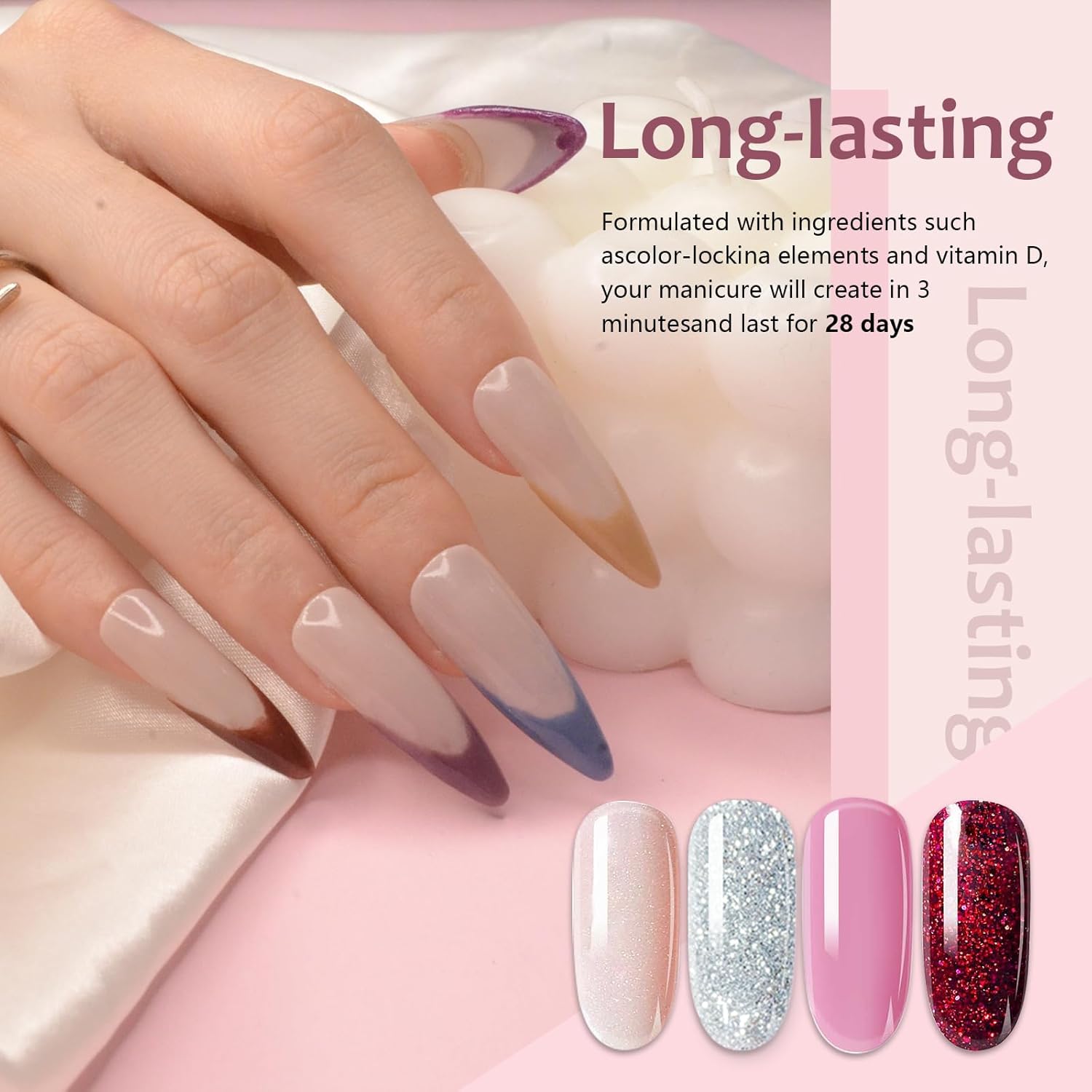 - 【Warm Prompt】① Avoid direct contact with skin, if there is any incident, contact the doctor. ②The effection of dip powder may show differently in different people, 2~3 base coats while using will be the best.