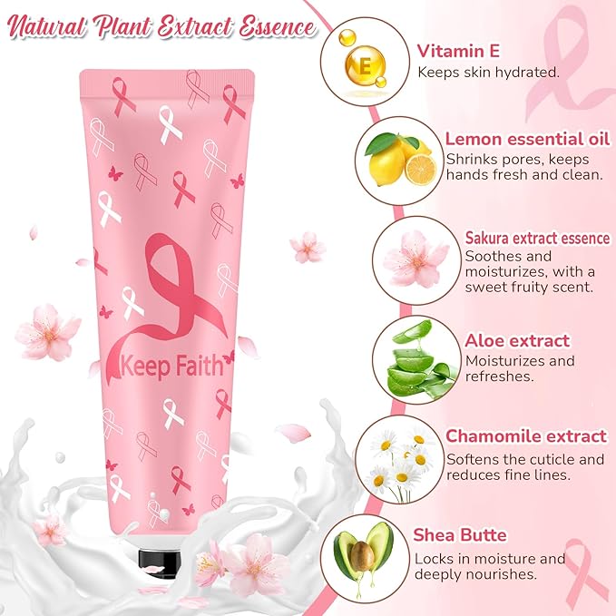 - Hand Cream Gift Set: this set includes 48 pieces of breast cancer awareness hand creams and 48 gift bags; The creams are available in pleasant fragrances; Plenty enough for personal use, refill, or sharing with family, friends and colleagues
