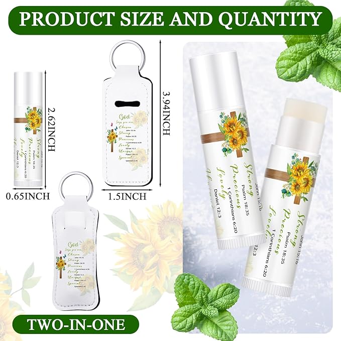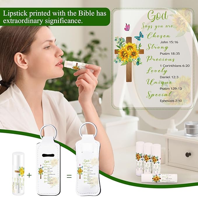 - Package Includes: you will love a bundle of fun Bible gifts set come in abundant sets of 18 lip balms, which are mint flavors, and 18 lip gloss keychain holders; The lip balms are not only sleek but also designed with the Bible theme to make it more appealing; Accompanied by the same number of lipstick holders, you are set with the ideal package to groom and maintain your lip moist