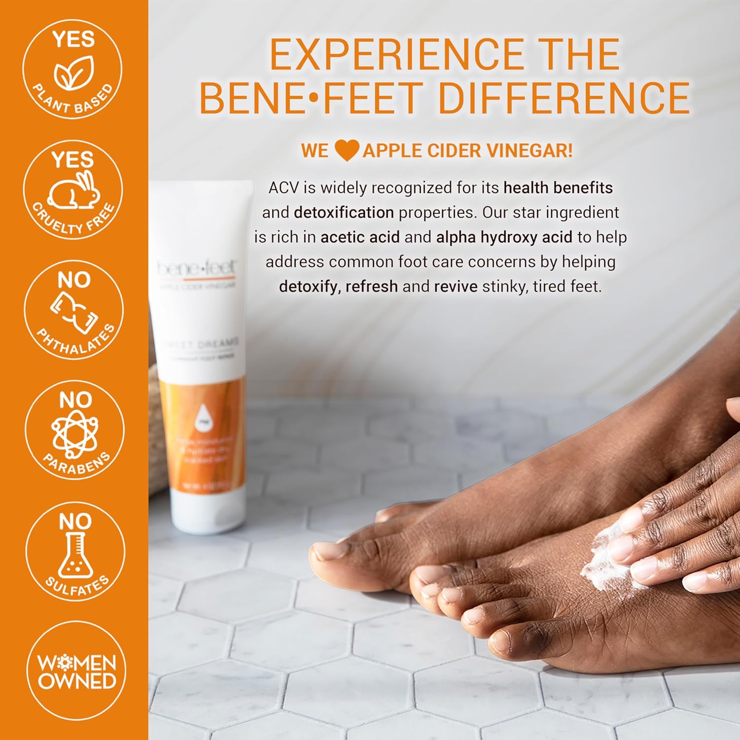 Benefeet Sweet Dreams Overnight Foot Repair - Night Cream for Detox, Moisturize & Soften Dry Cracked Skin, With Apple Cider Vinegar, Turmeric & Borage Oil, 4oz (2 Pack)