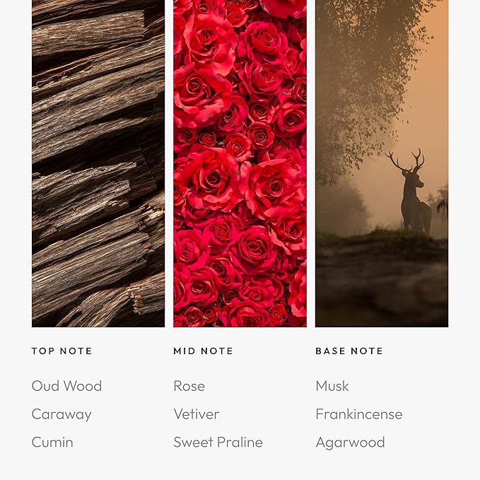- Immerse in our fragrance oil's enchanting blend of dark damask rose and oud wood, seducing with clove and sweet praline. With notes of caraway, cumin, vetiver, musk, and frankincense, experience a luxurious sensory journey unlike any other.