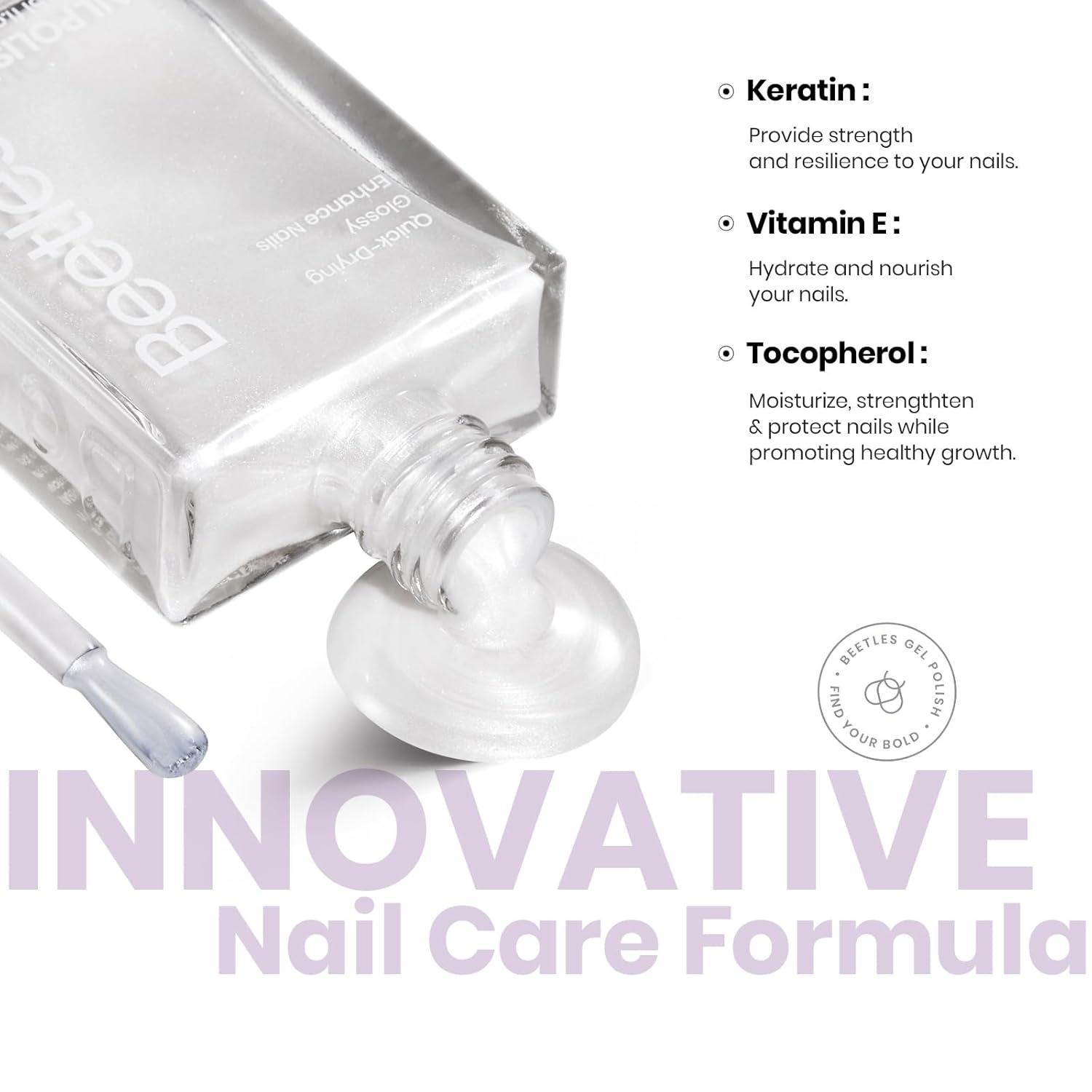 Beetles 2 in 1 Nail Strengthener Polish 1Pcs 15ml Pearl White Nail Polish-Fast Drying & Long Lasting Nail Polish Pearlescent Sheen Nail Lacquer Shimmer Art Effect for Nail Salon-Quality Results