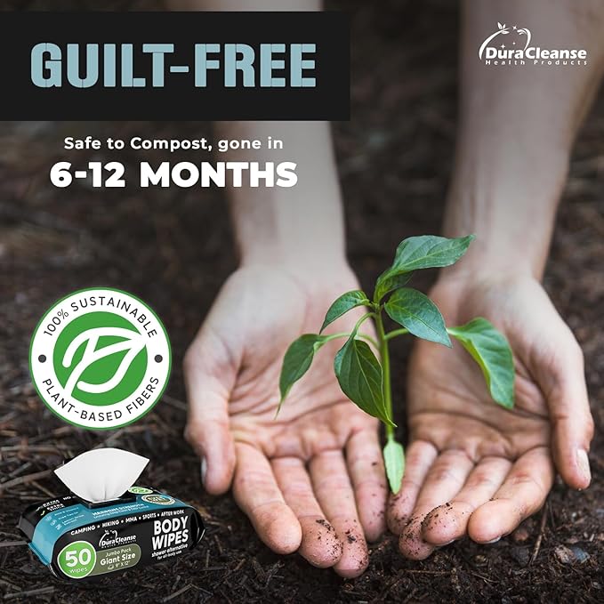 - Feel & Texture: These body wipes for camping, made with sustainable fibers & enriched with Aloe and Vitamin E are strong & sturdy. Our extra moist, rinse-free body wipes for men with double-seal lid stay fresh and won't dry out, making them camping must haves / festival camping essentials. These wipes for men help skin health and vitality . These man wipes are soft enough to be used as personal wipes & are compostable. Non-flushable.