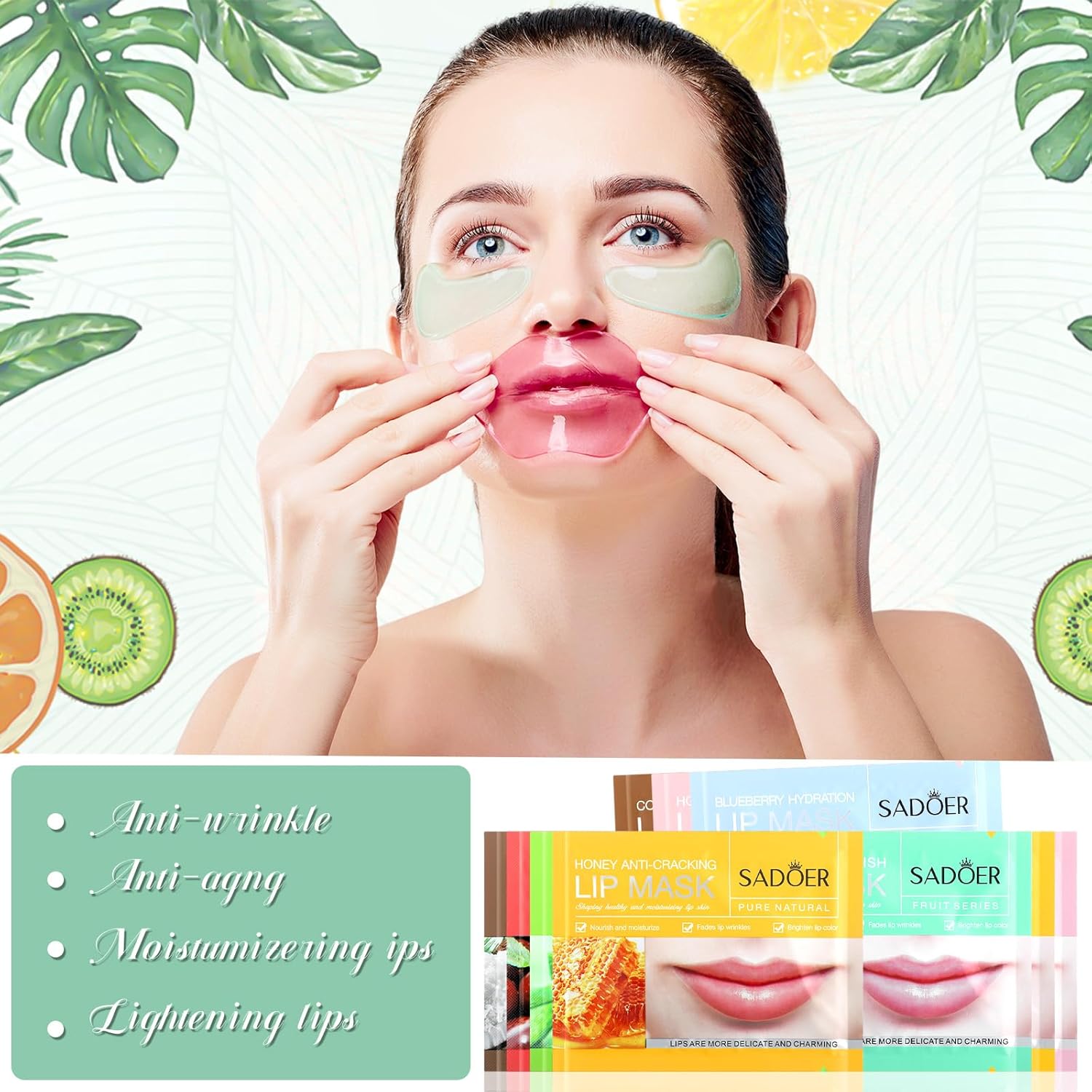 60 Pcs Moisturizing Lip Mask Eye Pads Lip Eyes Care Pads Mask Multi Pack Lip and Under Eye Patches for Puffy Eyes Spa Moisturizing Skincare Eye Lip Treatment (Lip)