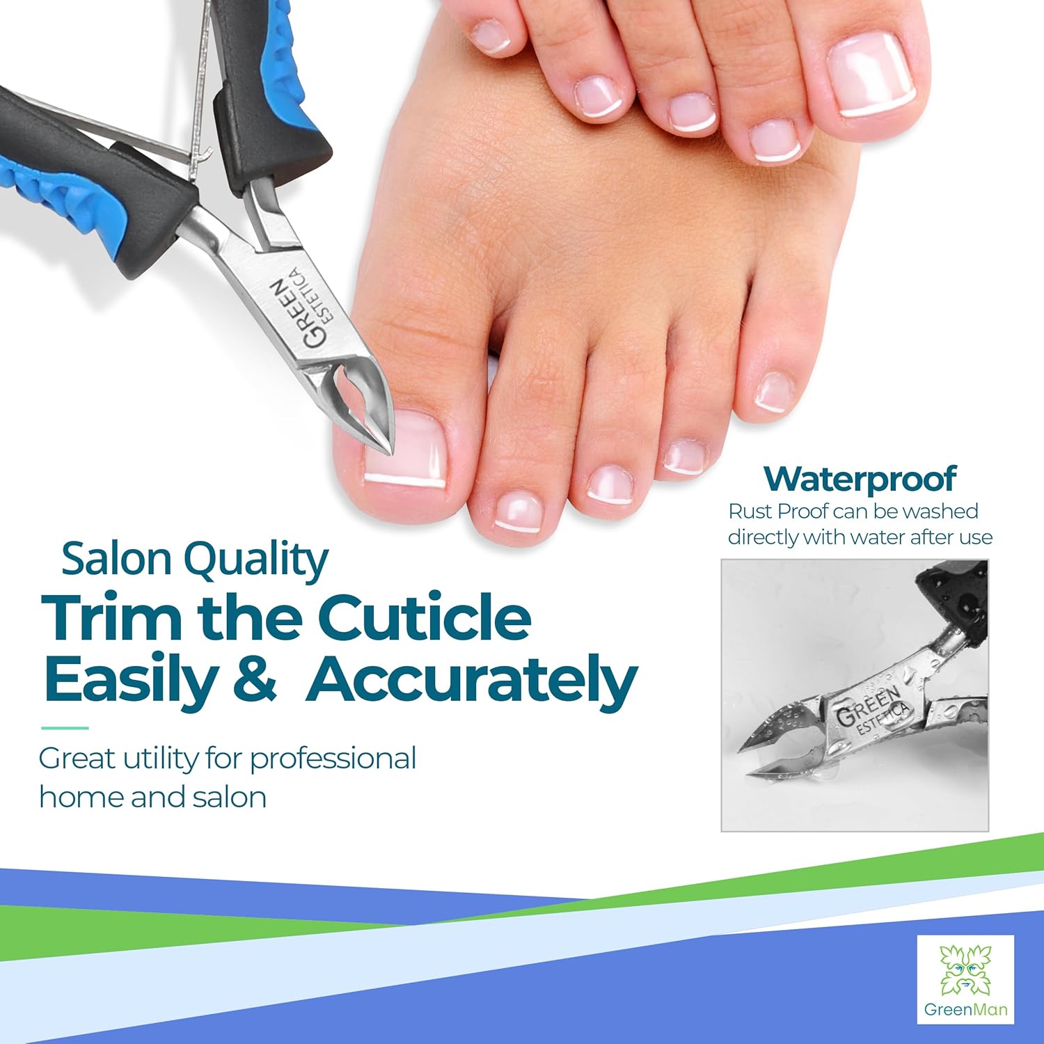 - [TOP NOTCH QUALITY FOR NAIL CARE] This Professional Cuticle Cutter with Non -Slip Grip handle is crafted from Premium Quality Surgical-Grade Stainless Steel makes it extremely Durable and Long lasting. Measurements: The cuticle nipper is 4.5” long, 3" wide and the Cutting blade is 0.25'' long