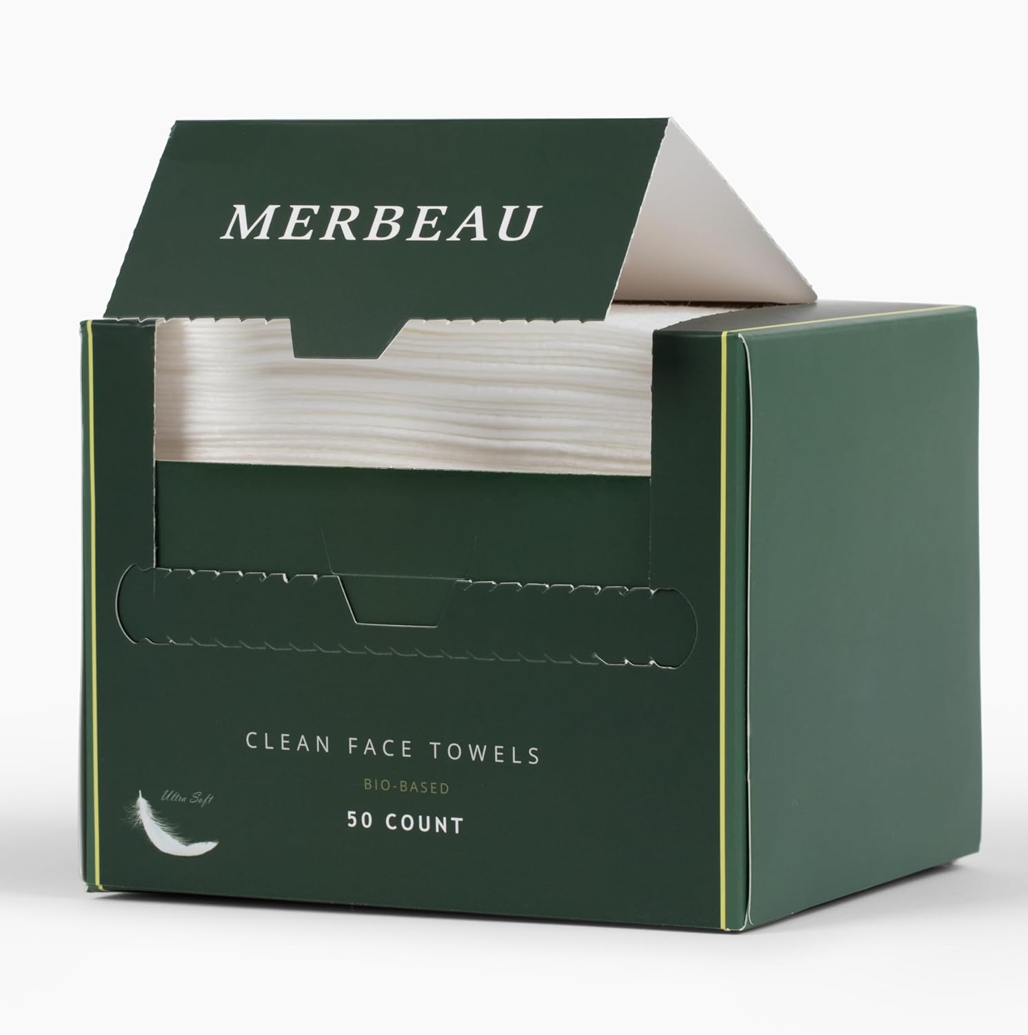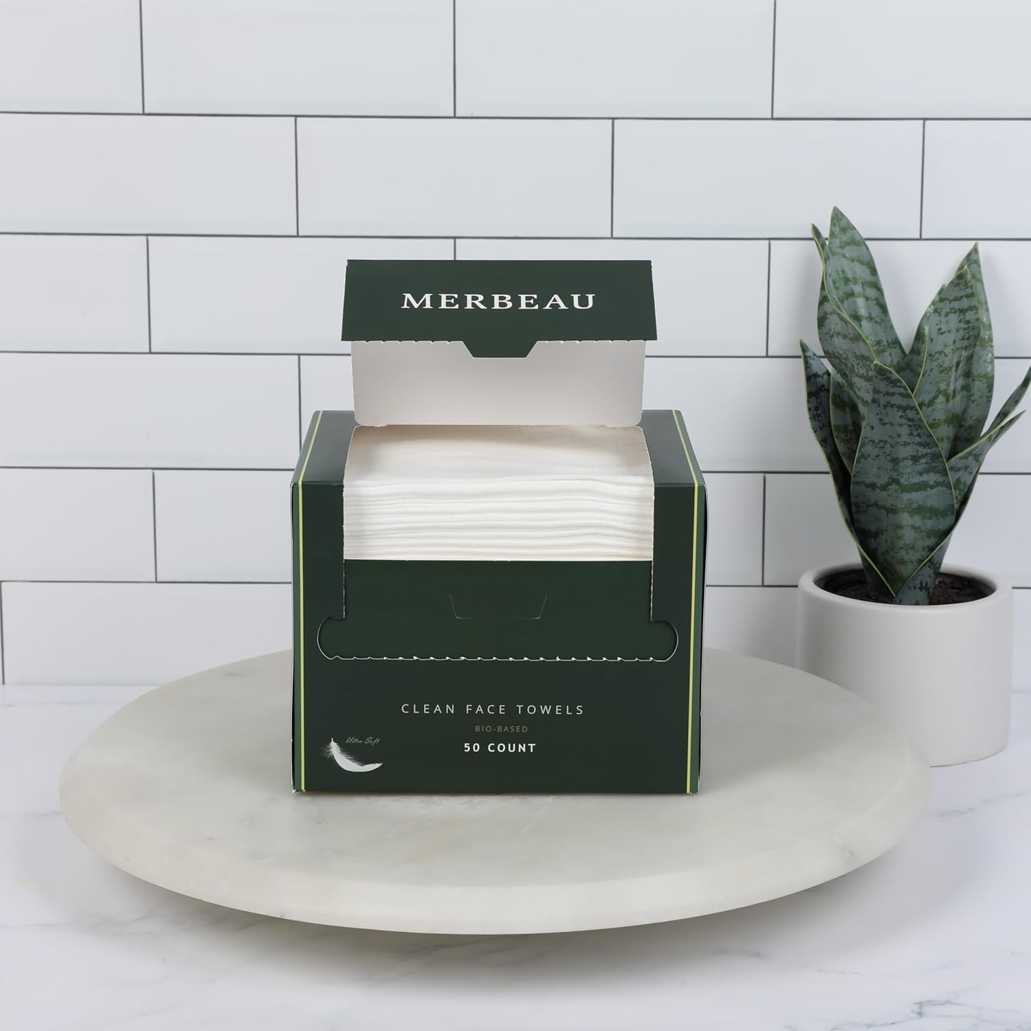 Clean Facial Towels for Sensitive Skin, 100% USDA Biobased Face Towels, 50 Count, Ultra Soft, Makeup Remover Dry Wipes, Viscose