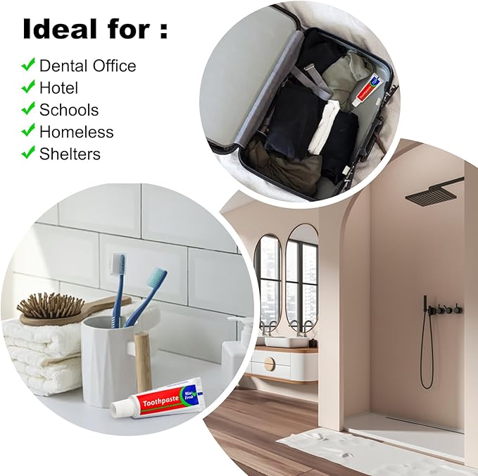 - Widely used: Mini toothpaste is individually packaged. They are great for camp traveling and also for business trips, homeless, offices, donations or hotel stays