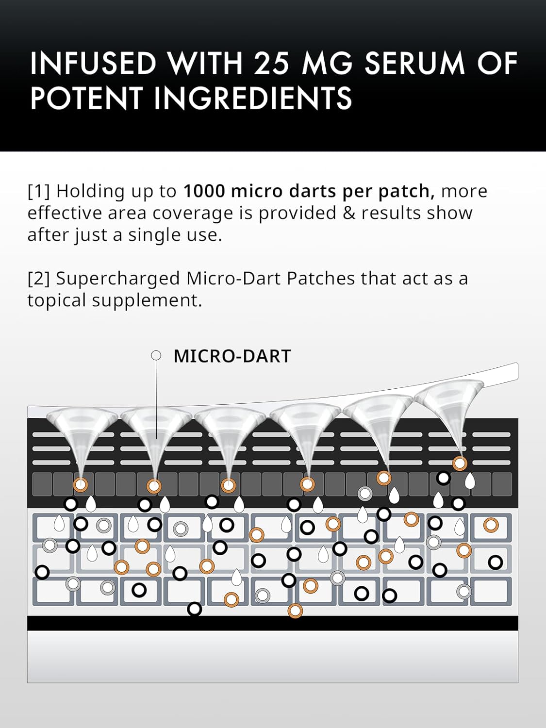 - [Serum-infused Micro Dart Patches] :This topical supplement patch is composed of antioxidants and synthesized molecules naturally found in the skin.