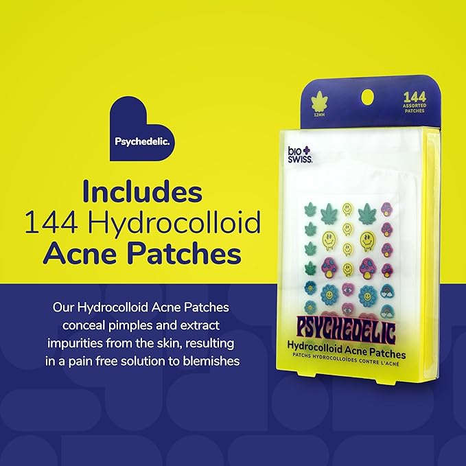 BioSwiss Psychedelic Pimple Patches, Hydrocolloid Acne Patch for Zits and Blemishes, Face and Skin Stickers, 144 Count