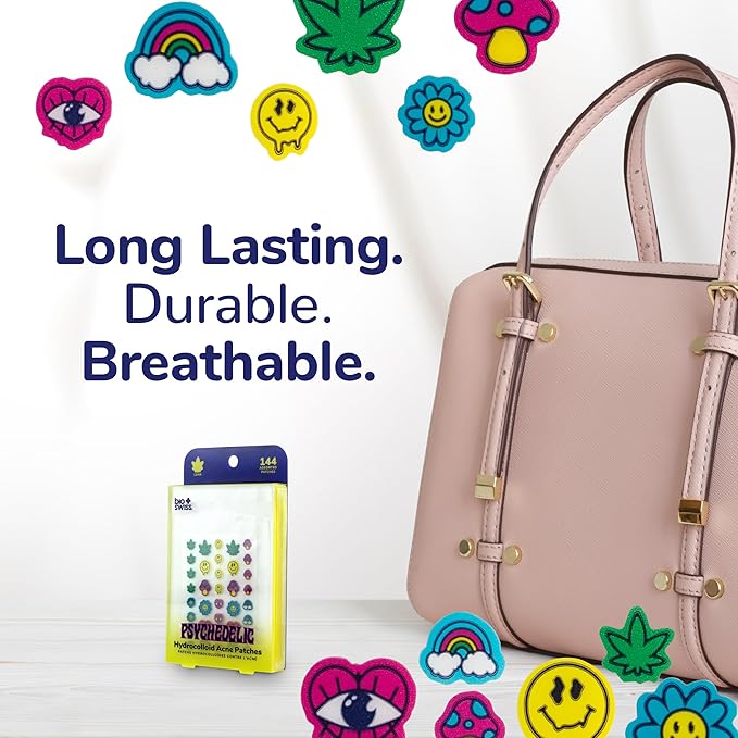 - PSYCHEDELIC ACNE PATCHES: Tackle zits and blemishes effectively and achieve clear and smooth skin with our Psychedelic Acne Patches. Our patches for pimples come in 6 funny and cute assorted styles: Melted Smiley Face, Mushroom, Pot Leaf, Rainbow, Eyeball Heart, and Smiley Flower