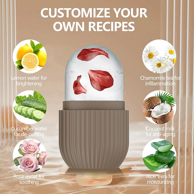 - Customize Preferences - Facial ice roller can enhance the skin care effect as per your creativity and customized formula according to your specific skin needs, such as lemonade for whitening, and coconut for improving skin. Even you can use a juicer to squeeze them into juice, then add water, essential oils, and roses to the ice tray.