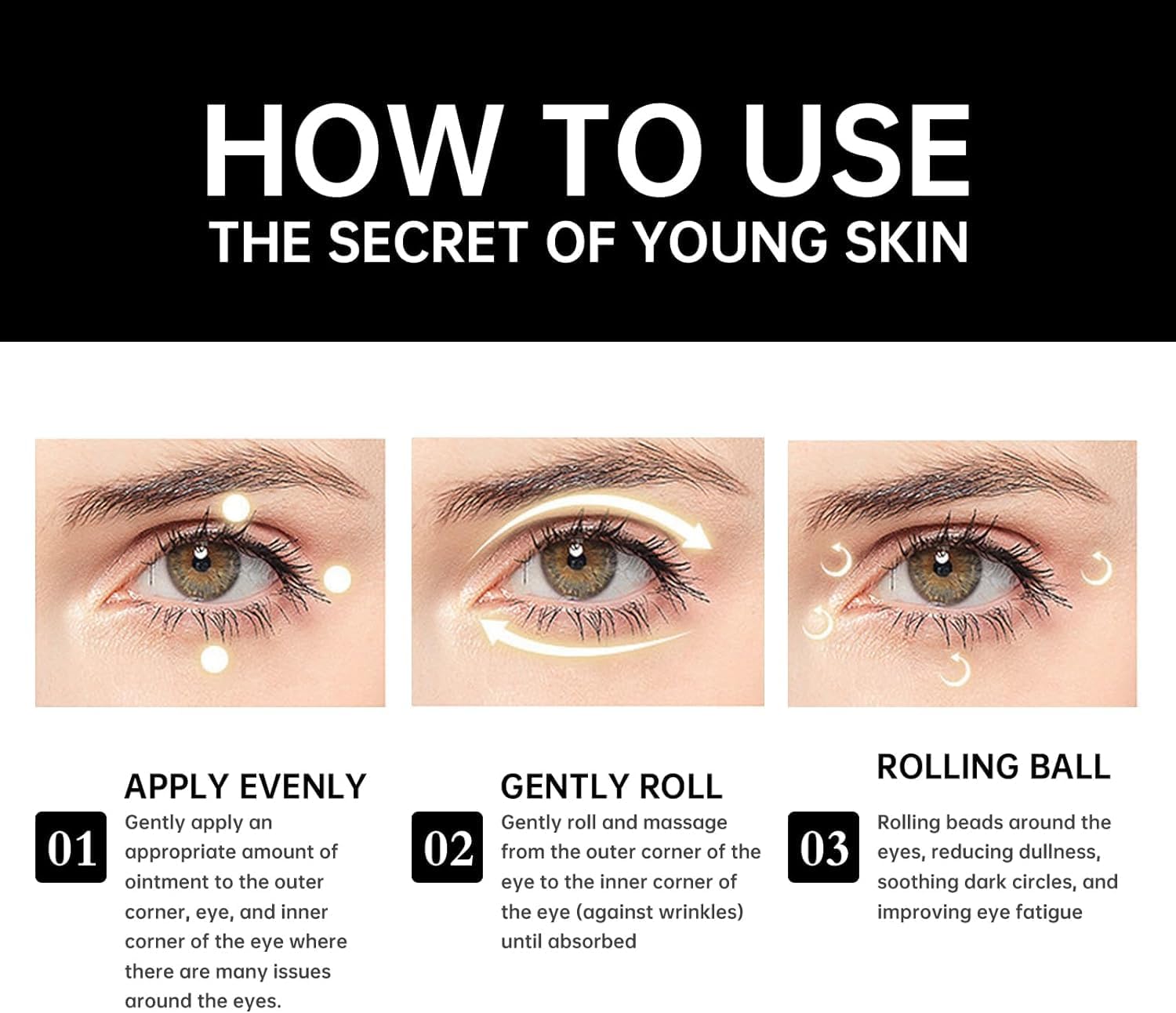 - 【Optimal Absorption】To achieve optimal absorption of nutrients, it is important to apply an appropriate amount of essence each time and ues the massage head and proper techniques to fit the skin around the eyes.