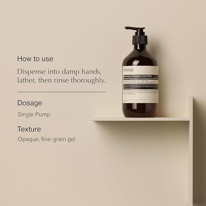 - Includes: Aesop Resurrection Aromatique Hand Wash (16.9 oz) + Refill with screw cap (16.9 oz)