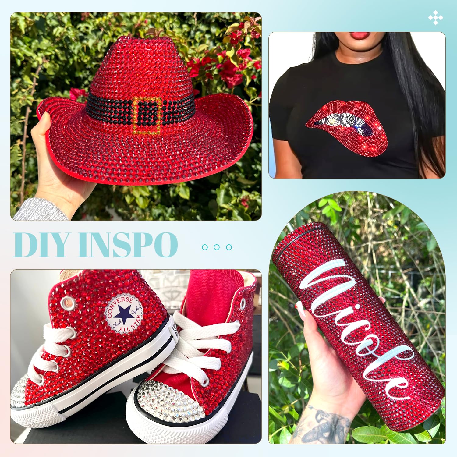 - 💎WIDE APPLICATION -- These sparkling iridescent resin crystals are perfect for creating dazzling looks. Use them for bedazzling DIY crafts like shoes, tumblers, mugs, bottles, phone cases, popsockets, scrapbooks, photo frames, diamond paintings, greeting cards, bags, glasses, guitars, keychains, hats, masks, hair clips, bracelets, wristbands, clothing, wedding dresses, and more. Apply it to what you want to bling!