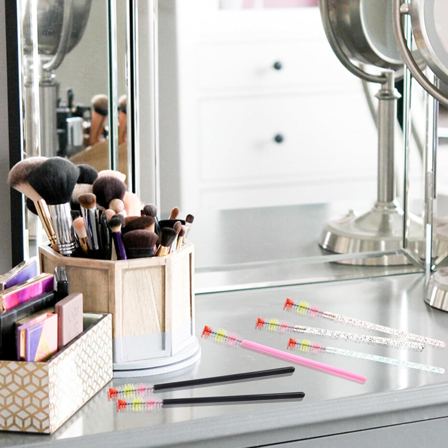 300PCS Disposable Mascara Wands Spoolie Brush Crystal Eyebrow Rainbow Brushes Eyelash Extension Applicator Makeup Kits.myaokue-up(Mix 6 Color)