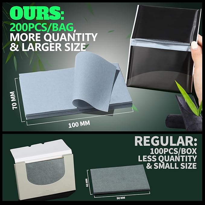 - Natural Blotting Paper: Infused with bamboo charcoal, offer powerful oil-absorbing properties while maintaining essential moisture levels for a refreshed complexion; features a matte finish, smooth texture and visible fine fibers, free from odors or impurities, without tearing or shedding, ensuring a reliable and effective experience every time.