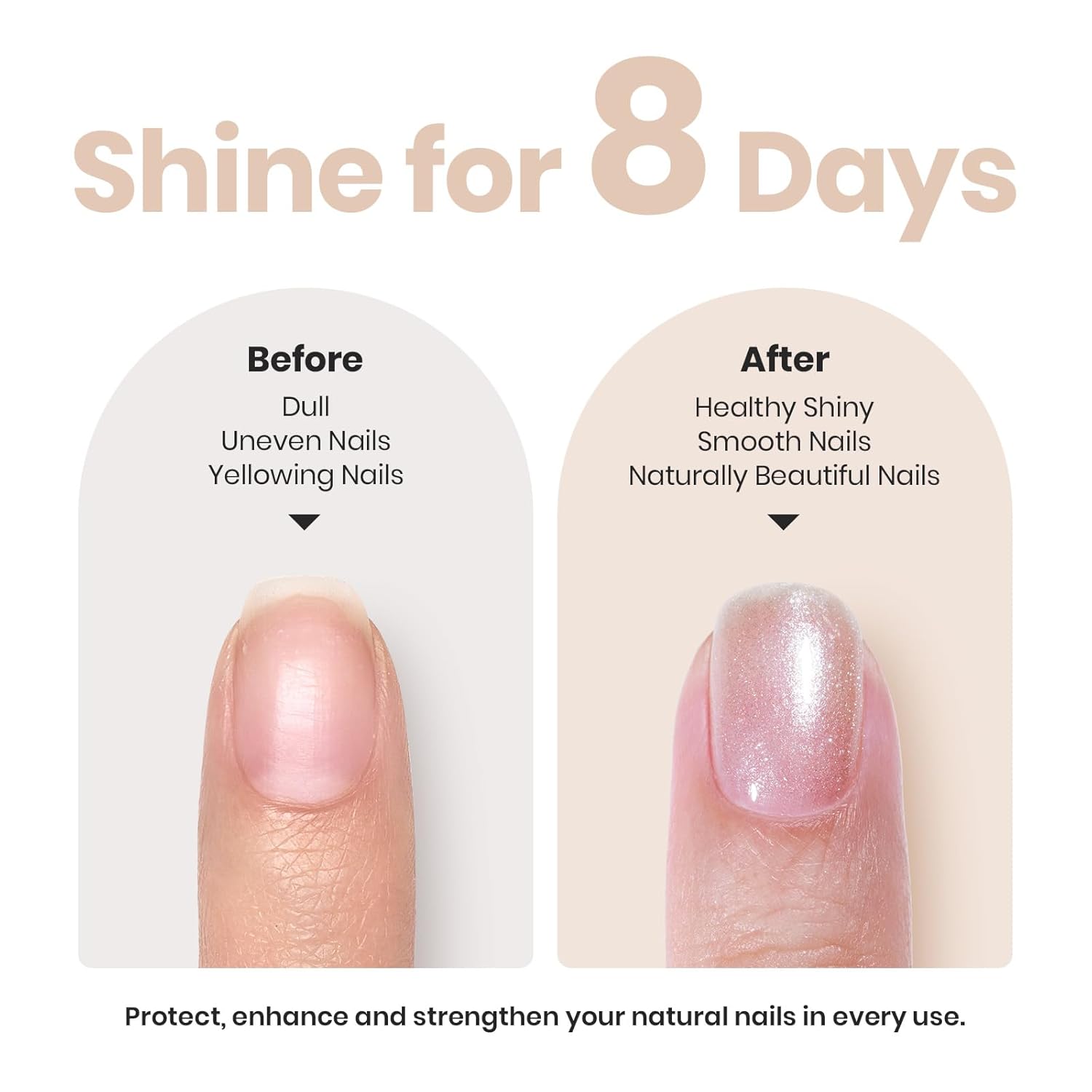 - 8 + Days of Lasting Gloss and Golden Fizz Color:Enjoy up to 8 days of vibrant, glossy color that keeps your natural nails looking fresh. The long-lasting formula ensures your nails stay shiny and flawless, reducing the need for frequent touch-ups.