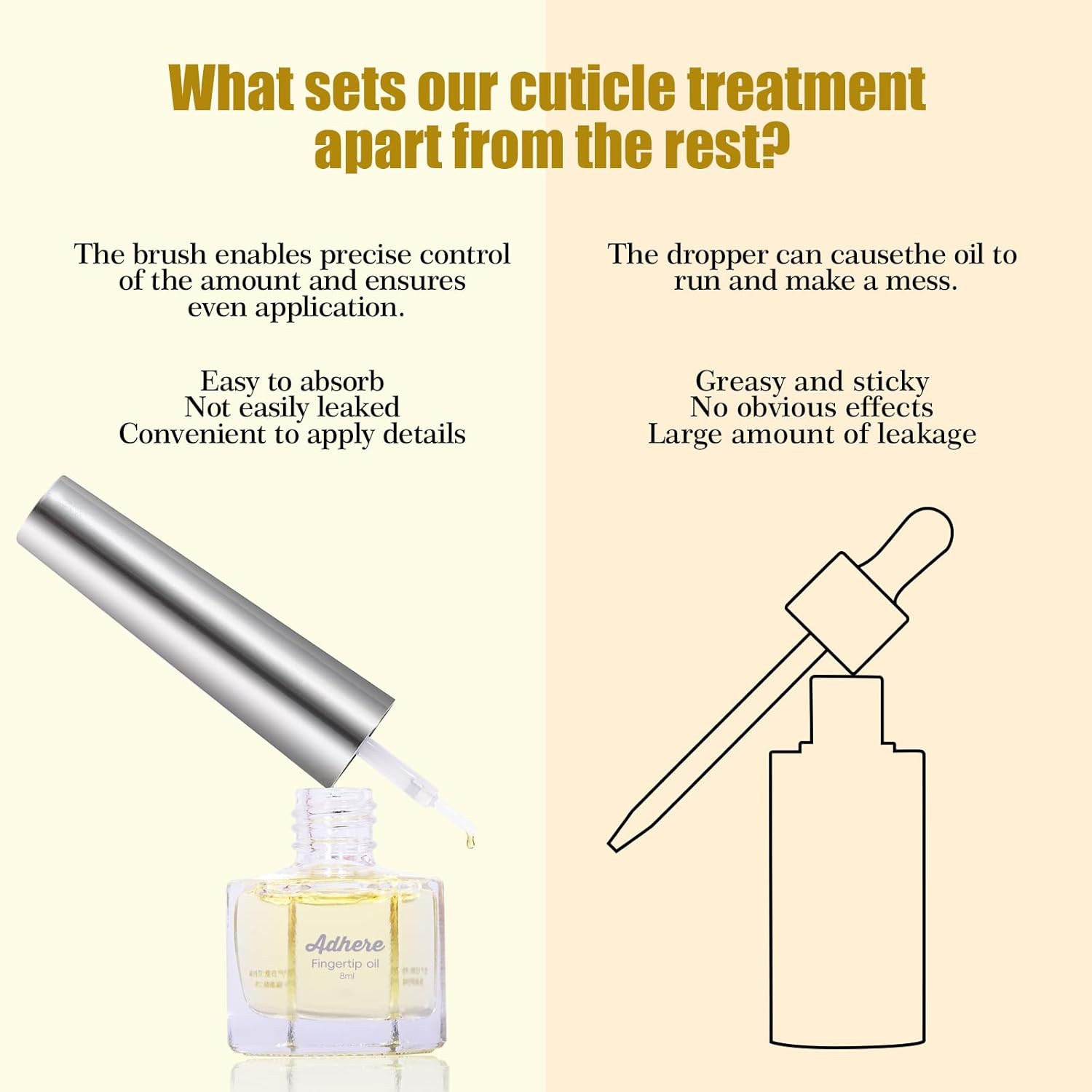 ADHERE Cuticle Oil for Nails Professional Nail Oil 8ML, Jojoba Nail Cuticle Oil Contains Vitamins with Soft Brush, for Nourishing, Hydrating, Dry Rough Nail Care Repair Essential Nail Care(Milky)