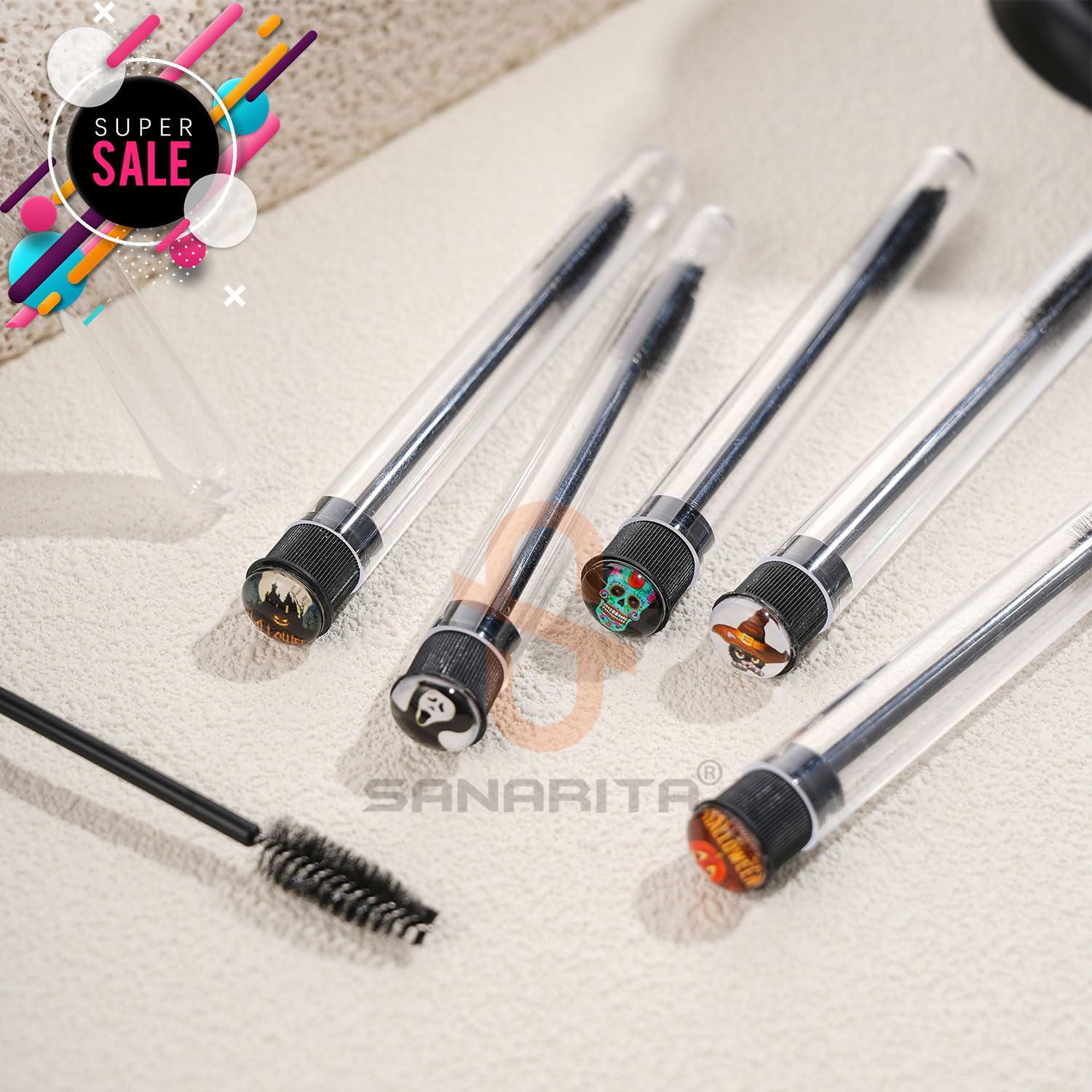 - Spooky Chic Set: Get into the Halloween spirit with this set of 10 pcs disposable mascara brushes and 10 pcs reusable tubes, featuring spooky designs. Each brush comes in a clear tube with a chic keychain and elegant tassel, adding a touch of festive flair to your beauty routine