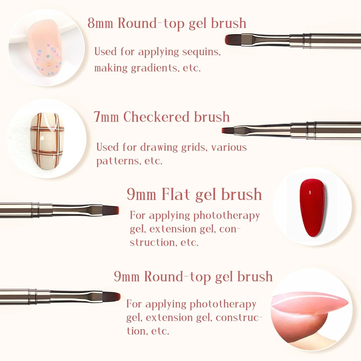 - Suitable for Various Nail Art Mediums: Whether you're using UV nail polish, extension gel, or traditional gel nail polish, these brushes are suitable for all mediums. They allow you to create intricate 3D patterns, floral designs, French nails, and other detailed nail art with ease.