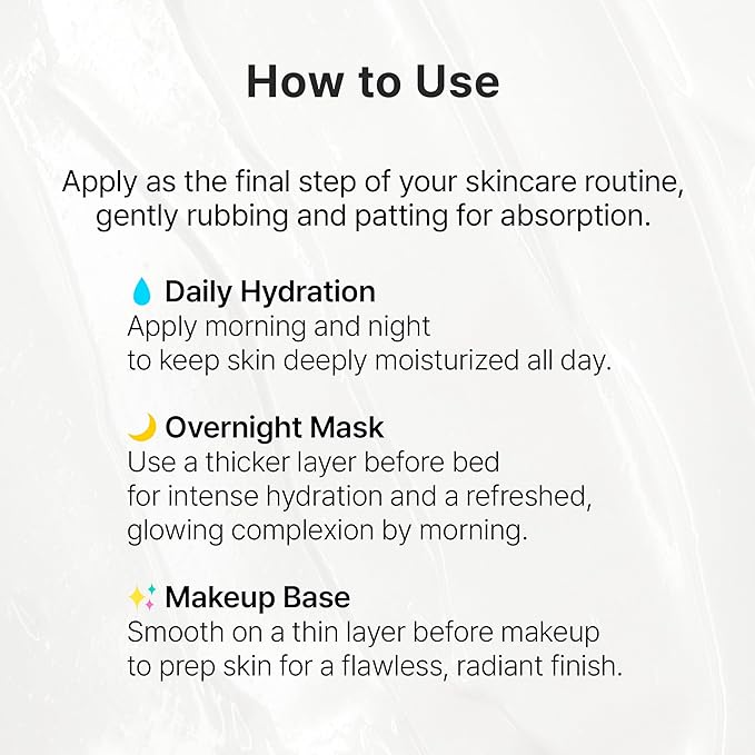 - ✅ CERTIFIED VEGAN & DERMATOLOGIST-TESTED | Enjoy this refreshing, lightweight gel as a daily hydrator, intensive overnight mask, or a smooth makeup base. Proudly certified vegan and registered with US MoCRA, Our non-comedogenic formula is dermatologist-tested to be gentle and effective, making it an ideal choice for sensitive, acne-prone, and redness-prone skin.