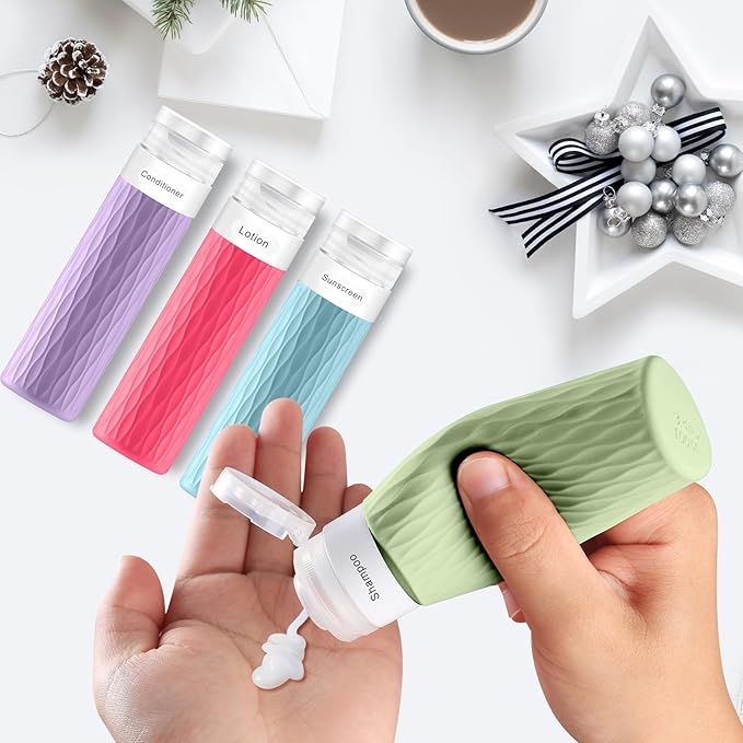 - Food Grade Silicone: The travel essentials toiletries are made of food-grade silicone that is safe, sturdy, squeezable, light, flexible, waterproof, refillable, and reusable. High-grade travel bottles tsa approved are soft and easy to squeeze out the contents, even sauce and salad dressing. The shampoo and conditioner travel bottles set strives to provide you a better user experience