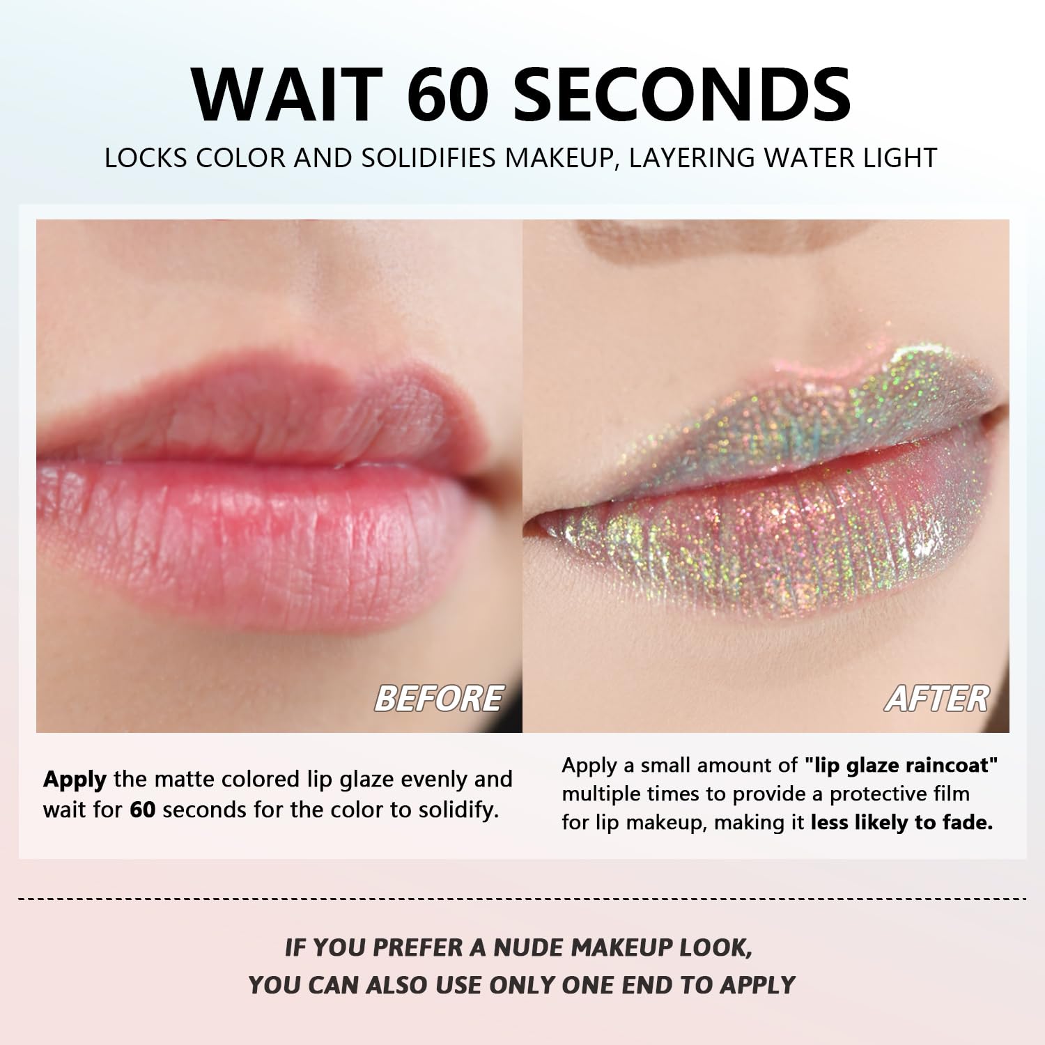 CHARMACY 2 In 1 Multichrome Moisturizing Lip Gloss, Double Head Liquid Lipstick, Mirror Waterproof Long Lasting No Fading Lip Balm, Hydrating Lip Plumper Waterlight Glossy Makeup #006