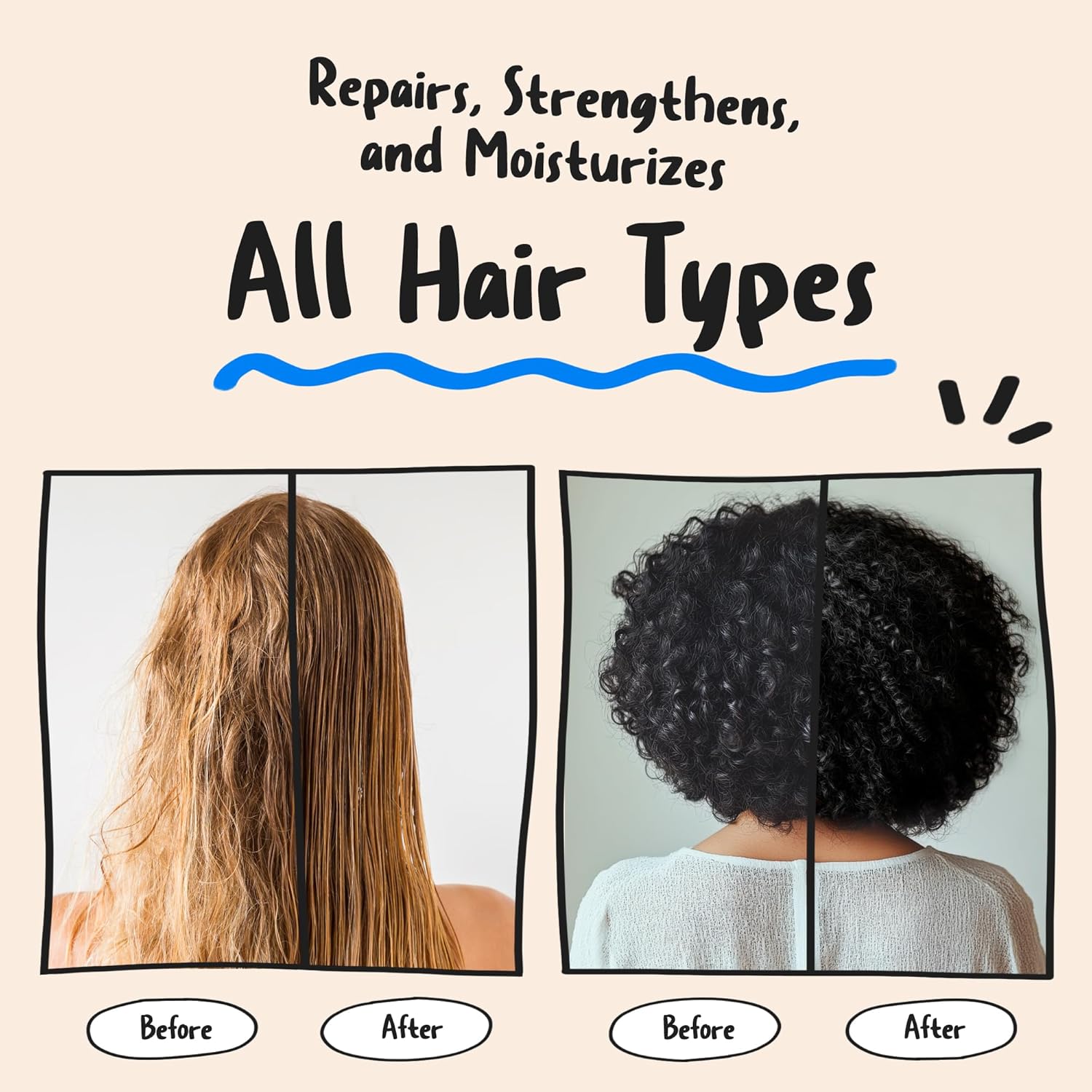 - FOR ALL HAIR TYPES – Suitable for all hair types, including frizz-prone, dry, damaged, color-treated, and over-processed hair. Helps restore smoothness and enhance manageability.