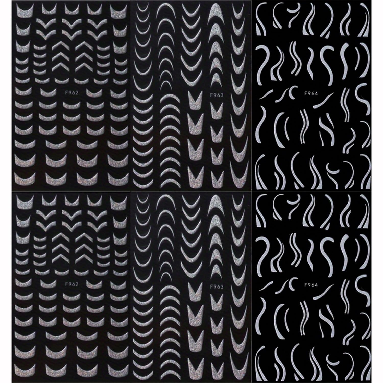 - Stylish Designs: Transform your nails with our french stickers for nails featuring elegant 3D curved lines and sparkly silver glitter for a chic look