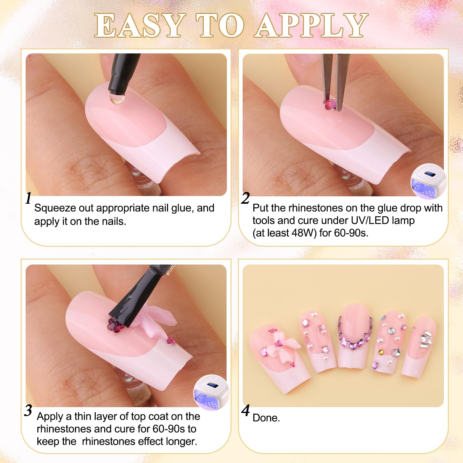 - Package Includes -- One package includes 3000 pcs multi shapes(1.2-3 mm) and 1700 pcs round(1.5-2.5 mm) mini nail gems, one tweezer, one pick-up pencil and 15 ml glue gel. The nail kit with sufficient tools can easily meet your nail design needs at home