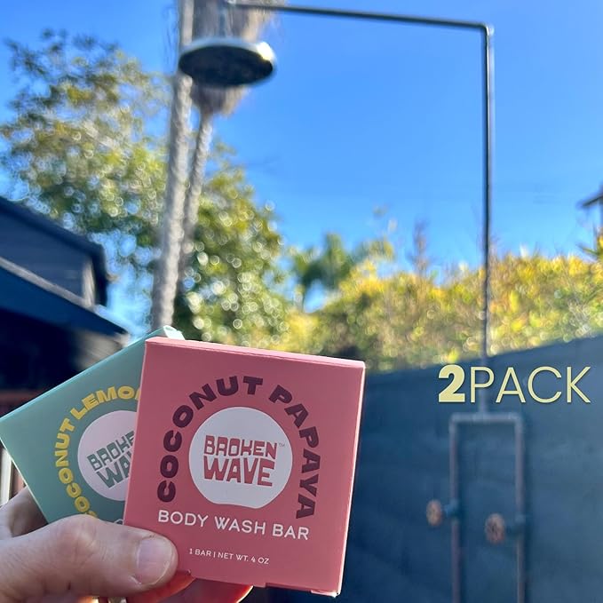 Broken Wave Body Wash Bar Soap | Moisturize, Nourish, Hydrate, Soothe All Skin Types | Natural Fragrance | Vegan, Cruelty, Sulfate, Paraben, and Plastic Free | Made in USA (2 Pack)