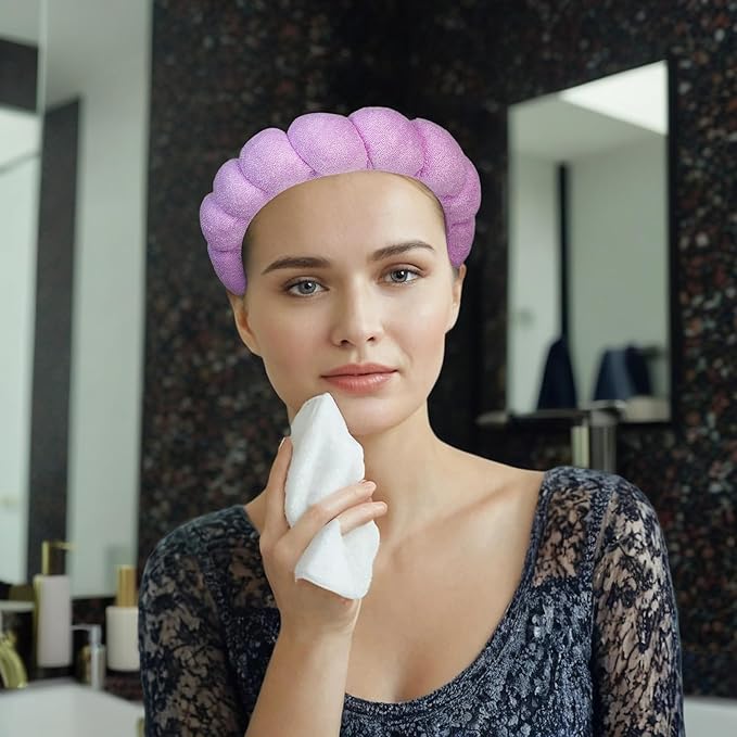 7 Pcs Spa Set, Facial Headband and Wristband Set, Skincare Accessories, College Style Girl Gift, Hair Accessories for Women and Girls (Purple)