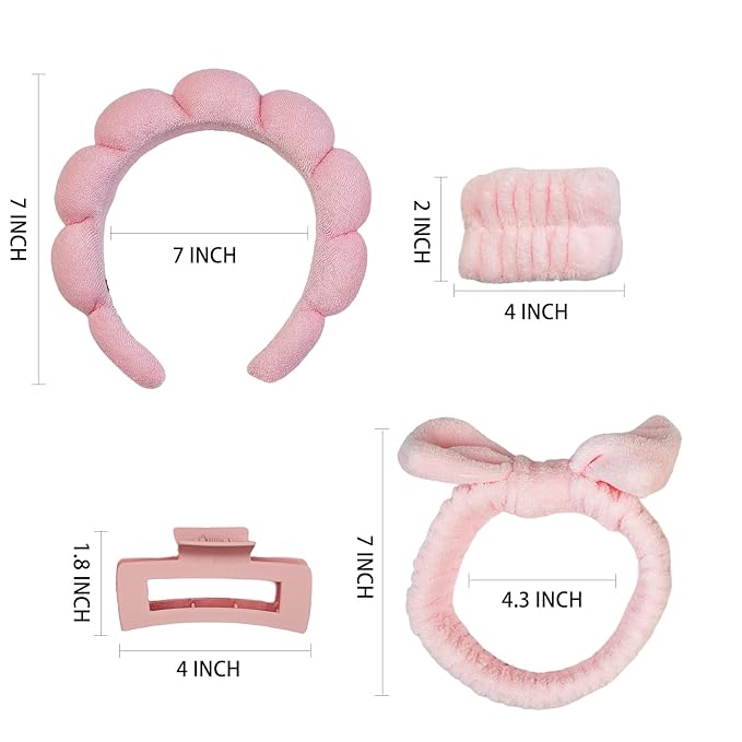 7 Pcs Spa Set, Facial Headband and Wristband Set, Skincare Accessories, College Style Girl Gift, Hair Accessories for Women and Girls (Pink)