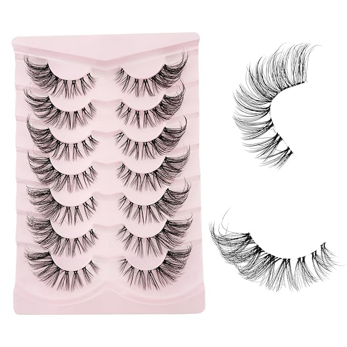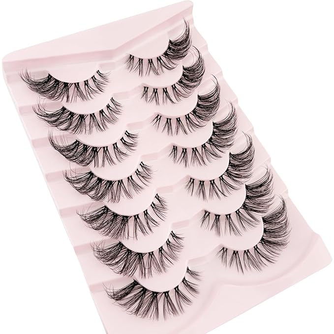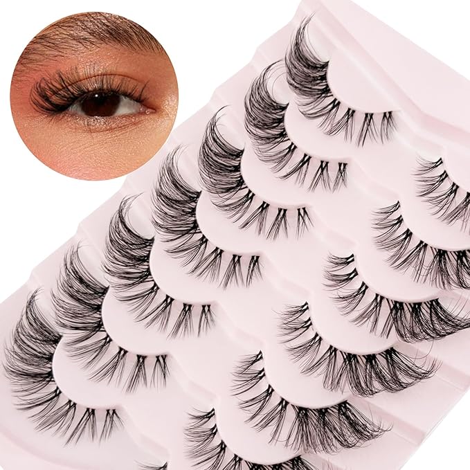 Cat Eye Lashes Wispy Mink Lashes Yasnai 18mm False Eyelashes Strips Lashes Fake Lashes Natural Eyelashes 7 Pairs Pack