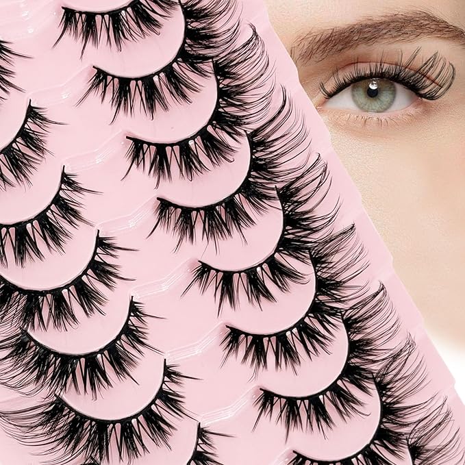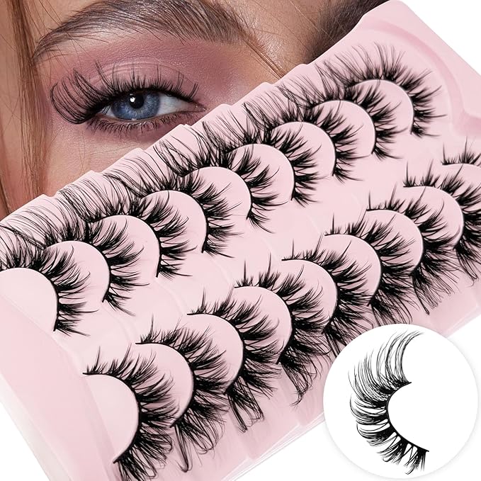Cat Eye Lashes Wispy False Eyelashes Yasnai Volume Thick Lashes Strips Lashes Fake Lashes Natural Eyelashes 9 Pairs Pack