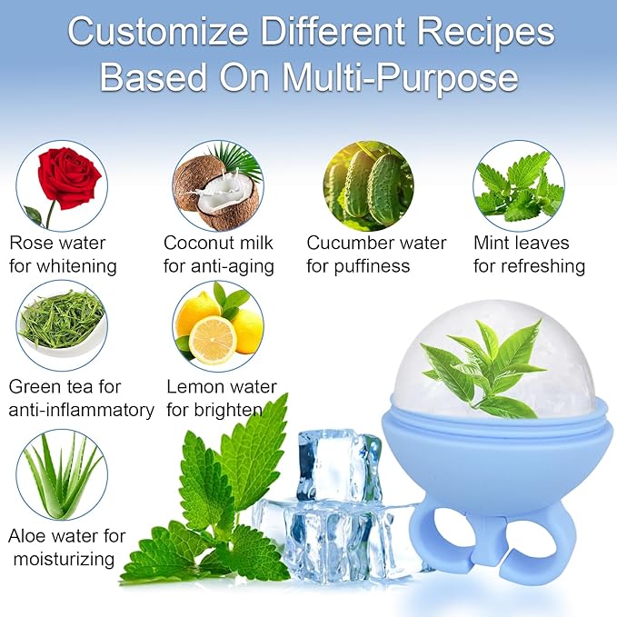 - Unique Finger Ring and Suction Cup Design: Different from the traditional ice roller, our ice face mold has a unique design. Hand ring design: protects your fingers from frostbite while in use, which is more ergonomic. The bottom suction cup design: the facial ice roller is placed more smoothly, which can prevent the face ice roller from being accidentally touched and tipping over causing water leakage.